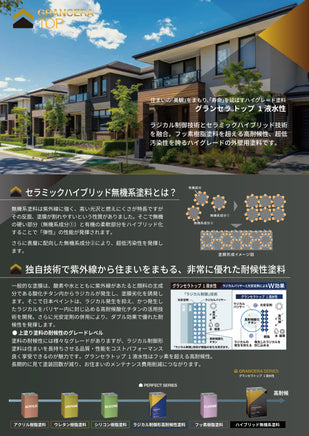 ラジカル制御技術にセラミックハイブリッド技術を融合することで、フッ素樹脂塗料を超える高耐候性、超低汚染性を誇るハイグレードの外壁塗料です。