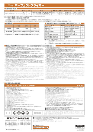 | 荷姿 | 15kgセット(塗料液)13.5kg、(硬化剤)1.50kg、4kgセット(塗料液)3.6kg、(硬化剤)0.4kg |
