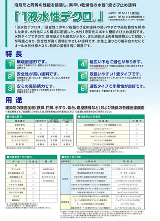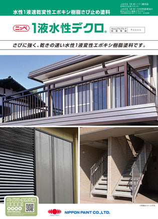 弱溶剤1液変性エポキシ樹脂さび止め塗料の性能を水性1液形で実現。水性上塗りとの組み合わせで外部鉄部の水性仕様化が可能です。