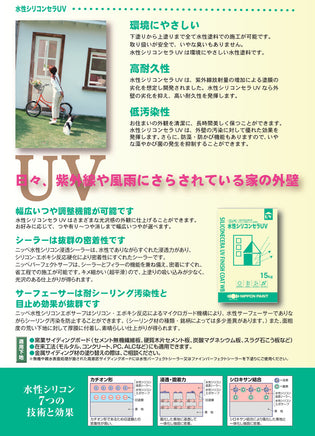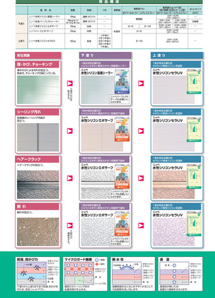「シリコン伝説」の代表商品、住宅外壁の塗り替え用塗料。 窯業サイディングボードを用いた住宅外壁の塗り替えに最適です。高耐久・低汚染・防かび・防藻・透湿・微弾性。