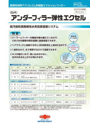 | 適用下地 | ALC面、コンクリート(RC、PC)、モルタル、掻き落し面、コンクリートブロック、活膜リシン面の目つぶし等 |
